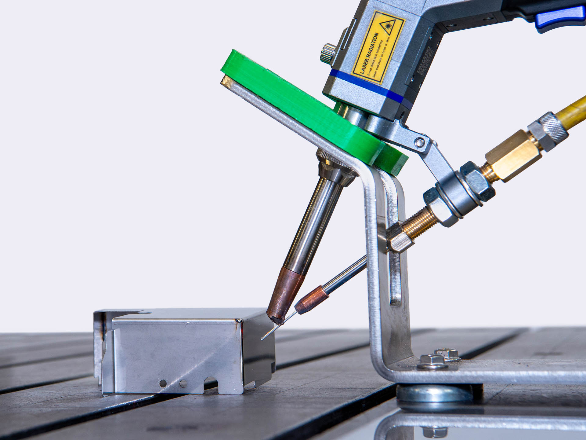 Als Anlage steht hierfür ein 6-Achs-Robotersystem mit 4 kW Festkörperlaser zur Verfügung. Verarbeitet werden vor allem hoch legierte Stahlqualitäten (z. B. 1.4301, 1.4571 etc.) aber auch Aluminium, Aluminiumlegierungen und Werkstoffkombinationen. Die Vorteile des Verfahrens Laserschweißen liegen in schlanken Nähten, wenig Wärmeeinbringung und daraus folgendem geringem Verzug. Unsere Spezialisten übernehmen die Qualitätssicherung auch in Zusammenarbeit mit externen Instituten und beraten bei Projektierung und Durchführung von schweißtechnischen Aufgaben.